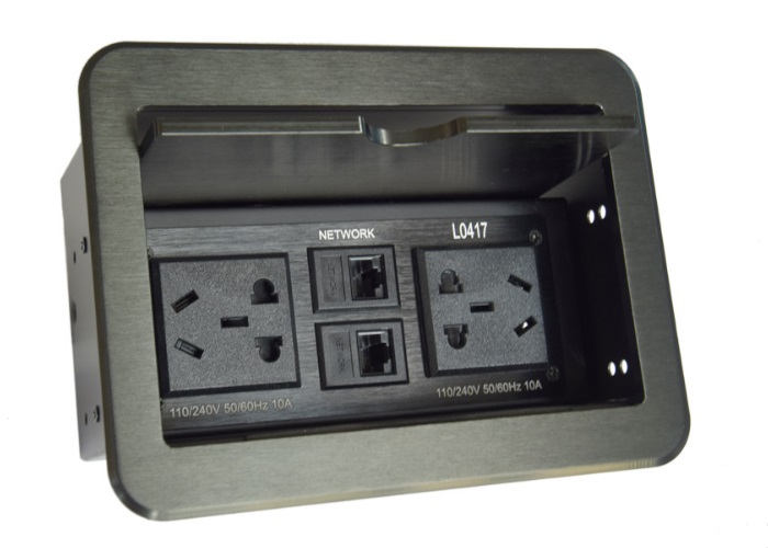 Features This type is designed with cover-sliding.When you want to use,you just need press the panel,then the panel will go through in the box,then you can see the whole configuration. The jumper type is the fixed power and the light current is the cable which is male to male.It will be hidden in the box if you don't need to use.If you want to use,just open the cover then get the cables for connecting.As the fixed factor,you can choose modules which are VGA+3.5Audio,telephone+network,AV series,2*USB or USB+HDMI and so on as your needs.It will be convenient for sales stock and easy for construction.This type panel is designed by a big loophole,which is easy to go through the wires.When you only want to use some of cables,you can take the cables go through the hole and then you can cover the lid,it will let the table look more beautiful. Description
