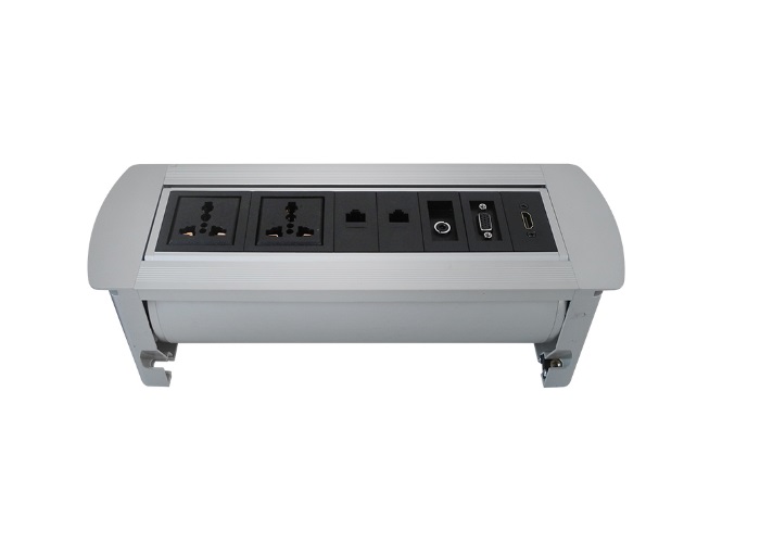 Manual Series rotatable tabletop socket is mainly used in advanced office, hotel and home, training room, lecture room. Tabletop socket could be used with other installation surrounding together. When power with the desktop power socket, the indicator light is power on, product come to working sation. Press the up/ down switch, all the multi-functional sockets could be rotate 180 degree to whatever position as needed. All configuration on desktop socket could be hidden under table if unused and would be rotating into the tabletop by automatically.