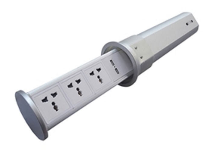 This type product is suitable for conferencing room,office desk,cabinet,celling,board,showing room,decoration of family,stage or other places,which integrates power socket and the light current interface in the same product.It will be hidden under the desk,only occupies 10cm circle hole of table.The body of this product uses high-quality aluminum treatment with anodizing.It is very bright and beautiful,wearable,easy to clean.All function keys can be connected by cable or flat cable.