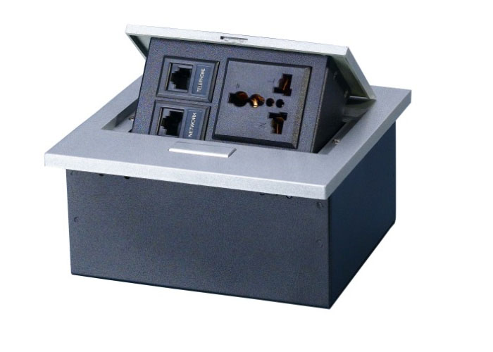 Pop up power socket for conference table Introduction: This type product is made by die-casting aluminum zinc,it is treated with coating or sand blast,which shows luxury and beautiful.Gleam silvery and sand black and white are available.The factor panel will be popup slowly in 45 degree with damped spring structure,which is no noise,easy to open.It is suitable to conference table,furniture and many other multimedia places.You can choose any configurations within the scope of the panel can be placed.